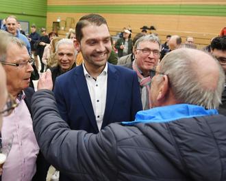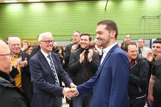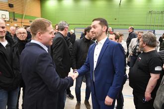 Dennis Dern (links) gratulierte um 19.49 Uhr Fabian Wedemann zum Wahlsieg