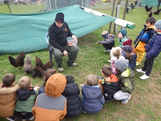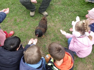 Dabei hatten sie die Gelegenheit, ein Huhn zu streicheln und aus der Hand zu füttern.