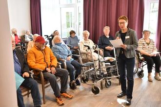 zahlreich erschienenen Bewohner im Mehrzweckraum