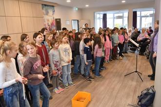Der Schulchor der Wiesengrundschule Leihgestern sang unter der Leitung von Susanne Saalbach und Klavierbegleitung von Katrin Kirchhoff-Lösel die Lieder „Die Sonne kitzelt mein Gesicht“, „Die Katzen schleichen durch die Nacht“ und „Ich bin anders als du“ vortrugen und bei den Liedern „Nun will der Lenz uns grüßen und „Alle Vögel sind schon da“ die Senioren zum Mitsingen aufforderten.
