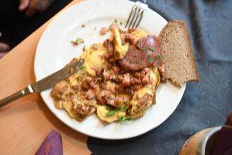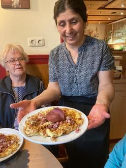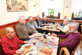 Im Jahre 1986 rief man bei der „Germania“ das Eieressen als kleine Abwechslung nach getaner Chorprobe ins Leben. Vereinswirtin Helga Schaum war in den ersten Jahren für die Zubereitung dieser oberhessischen Spezialität zuständig, was danach auch von den nachfolgenden Gastwirten in der Osterzeit übernommen wurde. Lange vor der „Germania“ gab es bereits diese Verköstigung im Hause Schaum bei der Burschenschaft „Einigkeit“. Allerdings im Gegensatz zum Gesangverein, mussten sich die Burschen erst um die Zutaten bemühen und sammelten so jährlich am Osterdienstagnachmittag Eier, Speck und Rotwurst in den Häusern Großen-Lindens. Als Dank an die Spender wurde diesen dann ein Gläschen „Kümmel mit Bittern“ aus der heimischen Likörfabrik Pirr & Co. gereicht. Wie bei vielen anderen Aktivitäten auch, brachte Corona eine Unterbrechung von 3 Jahren und danach war dann am 22. April 2022 wieder das Eieressen bei „Kronenwirt“ Dieter Deubel. Niemand ahnte zu diesem Zeitpunkt, dass es wohl das letzte im Vereinslokal gewesen sein dürfte. Nach der Schließung des Lokals und Umzug mit den Chorproben in den „Lindener Hof“, stand in diesem Jahr dort am vergangenen Freitag das Eieressen auf dem Programm. Und so kredenzte Wirt Salih Incesu und Cengül den erschienenen Sängerinnen und Sängern an diesem Abend den „Aierpannekuche“ und er mundete allen sehr. Und da er so gut war, adelte Sänger Wolfgang Hoth Wirt Salih mit den Worten, dass er sich jetzt „Oberhesse“ nennen dürfe, was Vorsitzender Erhard Köhler voll bestätigen konnte. Es war dieses allerdings nicht das erste „Germania“-Eieressen im „Lindener Hof“. Schon einmal fand es vor elf Jahren am 13. April 2012 dort statt, als man bei einer vorübergehenden Schließung des „Kronenwirts“ dort die Chorproben abhielt.