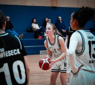 Ebenfalls Vizemeister wurden die U14-Basketballerinnen hier mit Lina Repp beim Freiwurf in der Begegnung gegen die TSG Wieseck 2