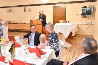 Landrätin Anita Schneider (am Pult) überbrachte Großvater Dr. Ulrich Lenz die Glückwünsche des Kreisausschuß