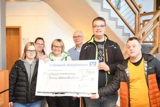 Auch die Vorsitzende von Selbstbestimmt Leben Linden, Roswitta Kirchhöfer (3. Von links) konnte mit Bewohnern des Bunten Ecks einen Scheck über 1.242 Euro entgegennehmen.