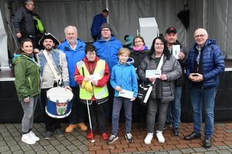 Bereits beim Marienmarkt hatten diese glücklichen Gewinner ihre Preise entgegennehmen können. Mit dem Erlös der 18 vorausgegangenen Gewinnspiele und Konzerte konnten Spenden in Höhe von fast 58.000 Euro zur Unterstützung der Hilfe vor Ort übergeben werden. ©Fotos: Thomas Wißner