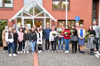 Einen bunten Farbenteppich aus Fotos, Zeichnungen, Malerei, Collagen, Grafik und Drucken präsentieren Schüler der Anne-Frank-Schule (AFS) im Rahmen des 164. Zyklus der Ausstellungsreihe Galerie im Rathaus. Gemeinsam mit Bürgermeister Fabian Wedemann eröffneten Schulleiterin Myriam Hövel und Kunst-Fachbereichsleiter Harald Rohm mit Ausstellungsleiter Hans Ulrich Heymann im Beisein der Schüler und Kunstlehrer den bis zum 14. Juni dauernden Ausstellungszyklus. Die gezeigten Arbeiten wurden im Kunstunterreicht von Schülern der Klassen 5 bis 10 im Kunstunterreicht unter Anleitung der Kunstpädagogen Stella Havemann, Joelle Ruderisch, Desire Peter, Gerrit Lauber und Harald Rohm angefertigt. Gezeigt werden Arbeiten zu den Themen Porträt, Landschaften, Surrealismus, Vögel, Katzen, Perspektive, Fantasie, Hundertwasser und Übermalungen (siehe auch unter Schulnachrichten der Anne-Frank-Schule)