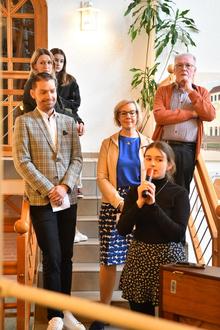 Musikalisch umrahmten die beiden Schülerinnen Sophia Gergenreider und Sarah Shakir die Vernissage mit ihren Gesangsbeiträgen