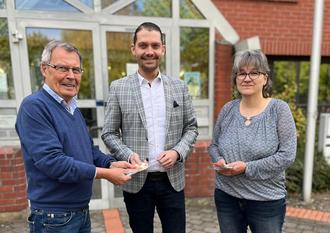 1.600 Euro überreichte Ehrenbürgermeister Dr. Ulrich Lenz jeweils zur Hälfte an den Förderverein Soziale Dienste Linden und die Jugendarbeit der Stadt Linden. Anläßlich des 80. Geburtstags des langjährigen Lindener Stadtoberhaupts hatte der Magistrat zu einem Empfang in die Lindener Ratsstuben eingeladen (wir berichteten) und der Jubilar darum gebeten anstelle von Geschenken einen Geldbetrag in die Spendenbox zu werfen. Bereits in der Einladung war auch angekündigt worden, wer das so zusammengekommene Geld erhält. 1.505 Euro waren so zusammengekommen und um einen runden Betrag zu übergeben hat Lenz die Spenden noch aufgestockt und so jeweils 800 Euro der Rechnerin des Förderverein Soziale Dienste Linden, Susanne Müller (rechts) und Bürgermeister Fabian Wedemann (links) für die städtische Jugendarbeit übergeben. Hier soll das Geld für dieaktuelle Jugendarbeit und für den Jugendaustausch im kommenden Jahr mit der japanischen Partnerstadt Warabi verwendet werden. ©Foto: Thomas Wißner