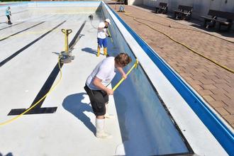 Nachdem am vergangenen Wochenende das Wasser im großen Becken des Freibads abgelassen wurde ging es am Montag für das Bademeisterteam mit Unterstützung von Mitarbeitern des Bauhofs an die Reinigungsarbeiten. Die Vorfreude auf die kommende Freibadsaison Linden steigt, denn die Eröffnung ist bereits für den 16. Mai geplant. Und vorher werden jeweils am 13., 14. und 15. Mai bereits von 16 bis 19 Uhr Dauerkarten an der Freibadkasse angeboten. Wie bereits im vergangenen Jahr werden die Dauerkarten mit einem Paßbild versehen und Dauerkartenkunden gebeten beim Kauf ein Paßbild mitzubringen. Während innen das Becken gereinigt wurde, hat die Außenwand einen neuen Anstrich erhalten und auch die Parkplatzmarkierungen wurden erneuert. Neben dem Becken werden auch die Umkleidekabinen, Sanitäranlagen und der Kiosk auf Vordermann gebracht, um den Aufenthalt so angenehm wie möglich zu gestalten. Die Verantwortlichen legen großen Wert darauf, dass alles sauber, sicher und einladend ist, damit sich alle Besucherinnen und Besucher wohlfühlen.