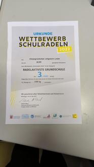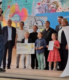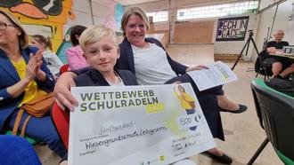 In Linden sowieso, aber in Hessen nicht so ganz. Doch das kann sich ja dann ab Sonntag ändern wenn das diesjährige Stadtradeln beginnt. Allerdings erfolgte erst vor wenigen Tagen in der Skatehalle in Wiesbaden die Ehrung für das Stadtradeln 2022 – und hier erhielt die Wiesengrundschule aus den Händen von Hessens Vize-Ministerpräsident, Wirtschafts- und Verkehrsminister Tarek Al-Wazir die Auszeichnung in Form eines Schecks über 500 Euro, Urkunde und Glaspylon für den dritten Platz. Beim Stadtradeln 2022 hatten insgesamt 175 Schüler der Wiesengrundschule in den drei Radelwochen 18.299 Kilometer zurückgelegt und damit 2,82 Tonnen CO2 eingespart. Schulleiterin Karin Schramm, Konrektorin Bernhild Engelbach-Holl und die für das Schulradeln an der Wiesengrundschule verantwortlichen Christina Dorenkamp mit der Vorsitzenden des Schulelternbeirates Nasely Beknazaryan und ihrem Stellvertreter Frank Brabetz wie auch die Vorsitzende des Fördervereins der Wiesengrundschule Susanne Pittl nahmen den Preis vor Ort für die Schule in Empfang. Mit dabei auch Heiko Nolting vom Elternbeirat und Silvia Nolting vom Vorstand des Fördervereins. Al-Wazir bescheinigte den Schülerinnen und Schüler ein klares Zeichen für die klimaschonende Mobilität gesetzt zu haben. „Für viele von ihnen ist es selbstverständlich, mit dem Fahrrad zum Unterricht zu kommen“. Der Wettbewerb wird vom Hessischen Wirtschafts- und Verkehrsministerium gemeinsam mit dem Integrierten Verkehrs- und Mobilitätsmanagement Region Frankfurt RheinMain (ivm) und dem Klima-Bündnis durchgeführt und ist eingebettet in die Klima-Bündnis-Kampagne Stadtradeln. Landesweit beteiligten sich rund 300 Schulen um die Preise für die meisten gefahrenen Kilometer, das größte Team, den höchsten Durchschnittswert pro Teilnehmer bzw. Teilnehmerin und das beste Fahrradprojekt. In der Sonderwertung für die Grundschulen ging der dritte mit 500 Euro dotierte Preis an die Wiesengrundschule Leihgestern. Lediglich die Grundschule Weißkirchen und Burgwiesenschule Oberursel rangierten vor der Wiesengrundschule.