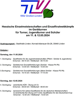 | Einturnen : 08:15 Uhr / Wettkampf : 09:15 Uhr |