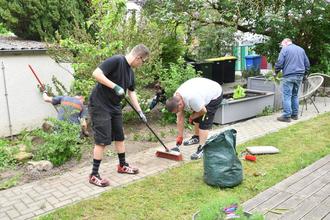 Im „Bunten Eck“ in Großen-Linden ist der Frühling bereits spürbar als die Mitglieder des Vereins Selbstbestimmt Leben Linden gemeinsam mit den Bewohnern zur Gärtenaktion schritten. Da wurde gejätet und gefegt, geschnitten und verladen sowie der Garten-Pool für die anstehende Saison hergerichtet. Der Pool wurde gesäubert und Wasser eingeladen. Allerdings verhinderte das Nachmittagsunwetter einen Badespaß.