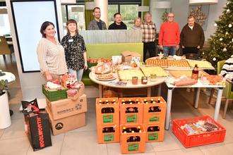 Auf den Tischen türmten selbstgebackener Stollen, Honig aus eigener Herstellung, Wurstpaket sowie Streusel-, Quark-, Apfel- und Butterlochskuchen und Milchbrötchen