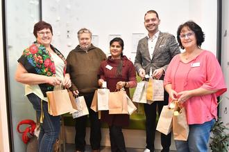 die diese dann in der Tagespflege An Tamira Akter Kanak Mitte) und Maria Liolios-Alt (rechts) überreichten ©Foto: Thomas Wißner