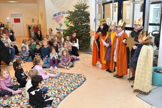Mit dem Lied „Es ist Sternsingerzeit“ eröffneten die jungen Sternsinger am Dreikönigstag ihren Besuch im Lindener Rathaus und gaben damit den Startschuss für die diesjährige Sternsingeraktion in Linden. Am Wochenende sind drei ökumenische Gruppen der Christkönigspfarrei unterwegs und besuchen rund 40 Familien sowie das Seniorenzentrum. Bürgermeister Fabian Wedemann begrüßte die von Pastoralreferentin Kerstin Rehberg-Schroth begleitete Gruppe mit zahlreichen Mitarbeitern im Rathaus-Foyer. Die 68. Aktion Dreikönigssingen steht unter dem Motto „Schule statt Fabrik - Sternsingen gegen Kinderarbeit“, mit dem Beispielland Bangladesch. Die Spenden unterstützen Bildungs- und Schutzprojekte für Kinder weltweit. Nach einer Stärkung und einem gemeinsamen Foto zogen die Sternsinger weiter. Den Abschluss bildet am Sonntag ein ökumenischer Sternsingergottesdienst um 10:30 Uhr in der Christkönigskirche.