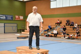 Ferdinand Jelli wurde aufs Siegertreppchen gebeten und mit der HTV-Ehrennadel in Gold für über 20 Jahre als Einsatzleiter der Kampfrichter geehrt ©Fotos: Thomas Wißner