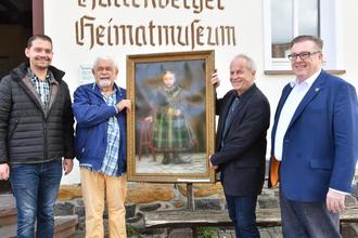 Ein über 120 Jahre altes Ölgemälde gibt weiterhin Rätsel auf, die nun jedoch der Ortsverein Watzenborn-Steinberg der Heimatvereinigung Schiffenberg lösen muß. Dem Verein wurde das als „Mädchen in Watzenborner Tracht, 1901“ im Hüttenberger Heimatmuseum in Leihgestern präsentierte Gemälde nun für die Heimatstube Watzenborn-Steinberg übergeben. Museumswärter Dr. Heinz Lothar Worm überreichte das Bild dem Vorsitzenden Dieter Schäfer im Beisein der beiden Bürgermeister Fabian Wedemann (Linden) und Andreas Ruck (Pohlheim). „Es fällt schon schwer das Gemälde herauszugeben, doch es gehört eher nach Watzenborn“, versicherte Worm bei der Übergabe zu der auch Leni Weimer gekommen war. Der Maler Georg Häuser XIV. (1874 bis 1962). Häuser war Hobbymaler, Landwirt und Wirt des Gasthauses „Zur Krone“ in Watzenborn-Steinberg, außerdem auch Posthalter in Steinberg. Das Gemälde zeigt Maria Häuser (1898 bis 1911), die älteste Tochter von insgesamt sechs Kindern, und entstand vermutlich nach dem Tod des Kindes anhand einer Fotoaufnahme. Fotos waren seinerzeit jedoch noch ausschließlich schwarz-weiß, das Ölgemälde zeigt aber die Watzenborner Tracht in ihrer gesamten Farbenpracht. Oben rechts auf dem Gemälde findet sich ein Datum „24.3.190?“ und eben genau die letzte Zahl gibt Rätsel auf, kann es sich um eine 1 aber auch um eine 7 oder eine 9 handeln - und passen doch alle nicht zur Entstehungsgeschichte. Schäfer bedankte sich bei Worm und Bürgermeister Wedemann, dass die Übergabe des Gemäldes so unproblematisch erfolgte und nun dem Verein übergeben wurde. „Ich freue mich, dass das Gemälde wieder zurück an seine Wurzeln kommt. Mein Dank gilt unserem Museumswärter Dr. Worm der sich dafür einsetzte, denn wir haben es mal bekommen und wissen nicht woher“. Auch sein Amtskollege Ruck versicherte, dass es immer wieder schön sei, wenn etwas in seien Heimat zurückkehre. „Wir danken für 73 Jahre Unterkunft hier und werden es die nächsten 200 Jahre in Ehre halten. So eine Rarität gibt es nicht oft. Danke, dass es wieder zurückkehrt und wir alle versichern, dass es einen hervorragenden Platz erhalten wird“. Die Heimatvereinigung in Watzenborn-Steinberg kann sich nun an die Recherche machen, was es genau mit dem Datum auf sich hat und wann das Gemälde tatsächlich gemalt wurde.