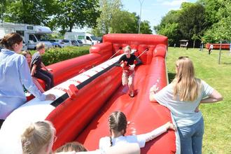 Für die Kinder stand eine Hüpfburg bereit wie auch das Bungee Run-Großspielgerät (Foto)n des Kreisfeuerwehrverband Gießen und auch eine Schminkecke war eingerichtet