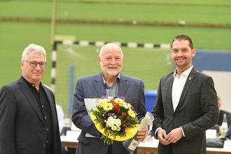 Zu Beginn wurde Friedel Löser (Mitte) der Ehrenbrief des Landes Hessen durch stellvertretenden Stadtverordnetenvorsteher Dr. Christof Schütz (links) und Bürgermeister Fabian Wedemann (rechts) ausgehändigt. Löser gehört seit 2016 für die FW der Stadtverordnetenversammlung an, war 16 Jahre deren Vorsitzender in Linden, gehörte fünf Jahre dem FW-Kreisvorstand an und gehört seit über 20 Jahren dem Vorstand des Camping- und Caravan-Club Königsberg an und war darüber hinaus von 1986 bis 2010 als Handball-Sekretär/Zeitnehmer (S/Z) bei Bundesliga-, Europapokal- und Länderspielen im Einsatz. ©Foto: Thomas Wißner