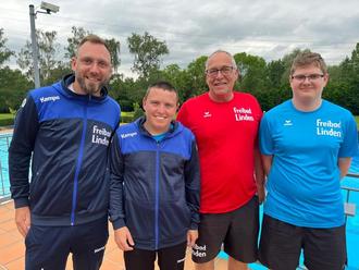 Freuen sich auf Besucher, das Freibad-Team (v.l.) Daniel Heil, Maximilian Scheer, Dirk Heil und Marius Hedrich