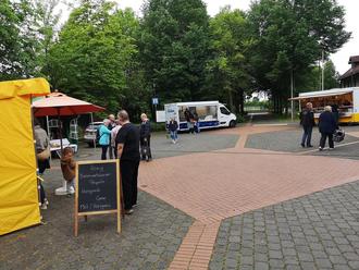 Nach 21 Jahren fand am vergangenen Freitag wiedre ein Wochemarkt im Stadtzentrum statt. Insgesamt fünf Stände waren auf dem Rathausvorplatz aufgeschlagen worden. An der Premiere wirkten Kashi Feinkost aus Hüttenberg, Kerzen Ebert aus Leun, Bäckerei Stein aus Lauterbach, Schäferei Amend aus Waldsolms und Lenas Fischkiste aus Grünberg mit und boten ihre Waren an. boten Beschicker wie auch Bürgermeister Fabian Wedemann und Marktmeisterin Alexandra Kielstein zeigten sich zufrieden mit dem Verlauf des Premierenmarktes. Wedemann dankte der Bürgergruppe „Wir tun was Linden“, die den Wochenmarkt angeregt hatte, nachdem sich zahlreiche Bürger mit diesme Wunsch an die Gruppe gewandt hatten. Künftig alle zwei Wochen findet jeweils von 9 bis 16 Uhr der Wochenmarkt im Stadtzentrum statt. Und für den nächsten Markttag, am 31. Mai haben sich zusätzlich bereits ein Gemüsehändler aus Lich, ein Weinhändler aus Gießen angemeldet. Zudem wird es Kaffee aus Linden und Käse aus Greifenstein geben. An der Attraktivität des Wochenmarktes wird nach den Worten Kielsteins weiter gefeilt, werden noch Metzger, Obst- und Blumenhändler gesucht. Auf jeden Fall lohnt sich ein Besuch.