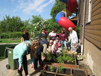 Am Samstag, 13. Mai trafen sich die Eltern und Kinder der Kita „Lindener Zwerge“ zum gemeinsamen Garten-Tag. Ziel war es, den Garten und den Hof der Kita bereit für den Sommer zu machen. Bei überraschend gutem Wetter kamen dann auch ca. 80 fleißige Helfer*innen zusammen. Erfolgreich wurden Blumenkästen bepflanzt, der Paletten-Bus repariert, das Tipi aufgebaut und vor allem die Hochbeete gesäubert und neu bepflanzt. Wir freuen uns jetzt schon auf die reiche Ernte an Gurken, Kohlrabi, Möhren und Radieschen. Ebenfalls wurde ein Kräuterbeet angelegt.