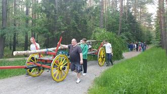 Im Wald wurde der Baum auf den historischen Leiterwagen geladen