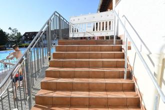 Neu gefliest wurde die Treppe auf der Südseite des Freibads zum Kiosk hin und wird nach ihrer Fertigstellung dann wohl noch in dieser Woche freigegeben. Die Arbeiten an den Fußbecken wie auch im Kinderbecken dauern noch an. ©Foto: Thomas Wißner
