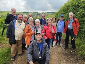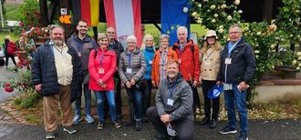 Auch strömender Regen konnte die Bilanz der Elsässer Weinwanderung nicht trüben. Zu dieser hatte der Verein „Macheren ohne Grenzen“ Magistratsmitglieder wie auch Vorstandsvertreter des Lindener Partnerschaftsverein nach Hunawihr eingeladen. Somit traf man sich nicht in der Partnerstadt sondern gleich in dem an der Elsässer Weinstraße gelegenen 570 Einwohner zählenden Ort, der zu den schönsten Dörfern Frankreichs zählt. Hunawihr gilt als einer der schönsten Orte der sich über 170 Kilometer erstreckenden Elsässer Weinstraße mit ihren malerischen Dörfern, bekannten Winzerorten und traumhaften Landschaften. Die elfköpfige Delegation aus Linden mit Bürgermeister Fabian Wedemann an der Spitze wurde von Sabine Dome seitens des Vereins „Macheren ohne Grenzen“ begrüßt. Neben Wedemann waren Ehrenbürgermeister Dr. Ulrich Lenz, Ehrenstadträtin Petra Braun sowie vom Partnerschaftsverein Vorsitzender Wolfgang Hoth, stellvertretender Vorsitzender Hartmut Schau, Geschäftsführerin Karin Lenz und Beisitzer Thomas Altenheimer mit dabei und nahmen mit den Freunden aus Macheren den Gastronomischen Spaziergang um das in Weinberge eingebettete Dorf in Angriff. Sechs Fein- und Weinschmecker-Etappen gab es und an sieben Stationen wurden die