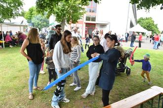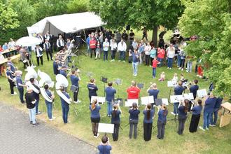 Großer Andrang beim Grillfest des Musikcorps der Freiwilligen Feuerwehr Großen-Linden am Himmelfahrtstag. Bei zwar bedecktem Himmel aber angenehmen Temperaturen von 19 Grad konnte sich Vorsitzender Christian Liebermann bereits bei seiner Begrüßung über einen ausgezeichneten Besuch auf der Grünfläche vorm Vereinsheim freuen. Dem Nachwuchs oblag auch die musikalische Eröffnung der Traditionsveranstaltung. Rhythmus und Tanz zeigten die Kinder im Alter von vier bis acht Jahren der musikalischen Früherziehung bei ihrem Beitrag „Der Gorilla mit der Sonnenbrille“, während die Superkids unter Zora Graf, Anita Graf und Nena Kuhl zu einem „Flug ins All“ starteten. Damit auch die Musiker des Musikcorps sich bei diesem Fest einmal der Geselligkeit widmen können, sorgte in diesem Jahr