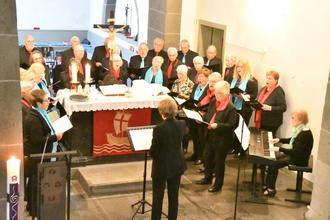 Der gemischte Chor (Foto) brachte die Lieder „Geh aus, mein Herz, und suche Freud“ und mit „Du machst mir Mut“ die deutsche Fassung von „You raise me up“ zu Gehör, während die Frauenstimmen „Wunder gescheh’n“ von Nena sangen.