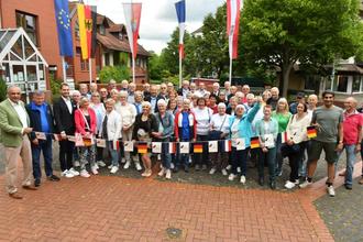 Partnerschaftsverein-Vorsitzender Wolfgang Hoth (links) begrüßte die Gäste aus der Partnerstadt