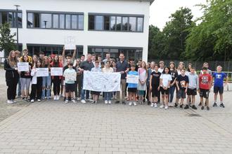 Ein Wünschetuch überreichten Schüler der Anne-Frank-Schule gemeinsam mit stellvertretendem Schulleiter Holger Müller an Bürgermeister Fabian Wedemann. Unter dem Motto „Lindener Jugend gestalten“ hatten die beiden neuen Jugendpfleger Christian Hertle und Rebecca Ritz während der Bundesjugendspiele einen Stand aufgebaut und die Schüler nach ihren Wünschen und Anregungen für die Stadt gefragt. Die wichtigsten Wünsche wurden aufgeschrieben und symbolisch mit den Unterschriften versehen. Daraus wurde nun ein Wünsche-Handbuch, das nun dem Stadtoberhaupt übergeben wurde. Dieser soll das Geschenk im Rathaus so lange als Mahnmal und Stimme der Jugendlichen aushängen, bis die Wünsche umgesetzt wurden. An der Wunschaktion hatten sich 660 Schüler beteiligt, wobei von den Jugendpflegfern eien Auswertung nach Klasse 5 bis 7 und Klassen 8 bis 10 erfolgte. Bei den Klassen 5 bis 7 wurde am meisten Jugendräume, gefolgt von Basketballplatz/Skating Park und Jugendangeboten (Kinder-Disco, Ausflüge/Freizeitpark und Kletterpark/Outdooraktivitäten genannt. Bei den 340 Schülern der Klassen 8 bis 10 rangiert an erster Stelle „Neue und schöne Jugendräume“ gefolgt von Jugend-Cafe und bei den Jugendangeboten wurden Filmabend/Kino, Zockerabend/LAN-Partys und Workshops wie Bubble Tea selbst machen, Barista Kurs und Social-Media-Marketing-Kurs genannt. ©Foto: Thomas Wißner