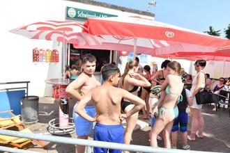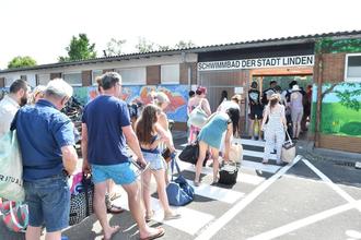 Riesenandrang und lange Warteschlangen am vergangenen Samstag vorm Freibad. Der bisher heißeste Tag des Jahres sorgte für einen großen Ansturm und am Ende des Tages waren es 2.934 Badegäste die sich im Freibad tummelten.