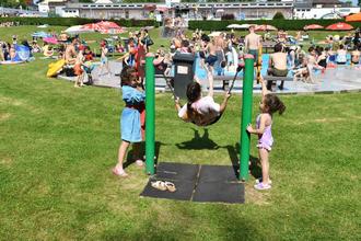 Abkühlung konnte sich am Kinderbecken auch beim Schaukeln verschafft werden ©Fotos: Thomas Wißner