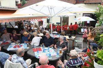Grioße Zuhörerschar im Biergarten beim letzten Spatzen-Auftritt