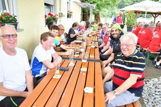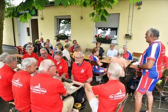 Meister- und runde Jubiläumsfeier verband die Radsportabteilung der TSG 1893 Leihgestern. Hessenmeister wurden die drei Radwandergruppen des Vereins im vergangenen Jahr und dies wurde nun gemeinsam mit dem zehnjährigen Bestehen der Abteilung im größten Verein der Stadt gefeiert. Abteilungsleiter Dr. Hermann Lodde hatte den Biergarten des TSG-Sportheims als Ziel einer Sternfahrt vorgegeben, um gemeinsam feiern zu können. Neben drei Radwandergruppen verfügt die Abteilung auch noch über eine Radsportgruppe. Die Radwanderer hatten mit 50 von 54 in die Wertung gekommenen Teilnehmern beim Radwanderwettbewerb des Bund Deutscher Radfahrer (BDR) in Hessen den Sieg in der Klasse 2 (31 bis 50 Teilnehmer) mit 28.552 Kilometern errungen. Die Kilometerleistung wurde bei 94 Fahrten erzielt und so Edelweiß Nieder-Wöllstadt (27.548 Kilometer/34 Wertungsteilnehmer) auf den zweiten Platz verwiesen. Im Bundesranking belegte die TSG einen achten Platz. Lodde erinnerte an den vor zehn Jahren erfolgten Zusammenschluss der TSG-Radgruppen mit der sich seinerzeit auflösenden Radsportvereinigung (RSV) Linden zur Abteilung Radsport innerhalb der TSG. Die gemeinsame Feier nutzte Lodde auch dazu den fleißigen “Stadtradlern“ zu danken, war die Radsportabteilung doch in der Teamwertung hinter der Wiesengrundschule der stärkste Verein. 33 Radler legten bei 466 Fahrten insgesamt 11.597 Kilometer zurück. „Getrennt gefahren, zusammen erfasst wurde das getrennt fahrende „Tandem „Sonja und Volker Hofmann“, wie Lodde verriet.