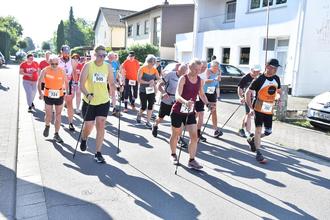 und für die 25 Nordic Walker über 5 Kilometer. Hier gewann Jürgen Viel (rechts/702/Treiser LWT) in 34:25,0 Minuten .