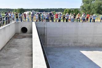 Bereits seit zwei Jahren ist das Regenüberlaufbecken (RÜB) Leihgestern mit nachgeschaltetem Regenrückhaltebecken (RRB) am Schafbach in Betrieb. In der vergangenen Woche konnte die Anlage besichtigt werden - und das Interesse war groß. Für insgesamt 3,35 Millionen Euro hat der Wasserverband Kleebach die Abwasseranlage auf einem 6.000 Quadratmeter großen Grundstück mit Beton- und Erdbecken errichtet und dafür eine Förderung des Landes in Höhe von 975.000 Euro erhalten. Der Bau war erforderlich, weil zwei Abwassereinleitungen aus dem Kanalnetz der Stadt Linden den Schafbach und damit auch die nachfolgenden Gewässer besonders belastet hatten, wie eine umfangreiche Untersuchungen ergeben hatte. 41 Bürger waren zur Besichtigung gekommen.