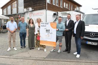„Wir sind dabei – Der Gutschein der hilft“ ist der Slogan einer bis zum 15. Juli laufenden Aktion der Gießener Tafel. Tafel-Leiterin Anna Conrad stellte gemeinsam mit Schirmherrin und Mitinitiatorin Landrätin Anita Schneider, den Bürgermeistern Thomas Benz (Allendorf/Lda), Jan-Eric Dort (Lollar) und Lindens Stadtoberhaupt Fabian Wedemann, Gießens Sozialdezernent Francesco Arman und dem Laubacher Stadtrat Marco Morgenstern das Projekt vor und ging dabei auch auf die aktuelle Situation der Tafel ein. Diese versorgt in der Universitätsstadt aktuell rund 1.000 Haushalte mit 3.800 Personen – und kann nicht den kompletten Bedarf abdecken. Auf einer Warteliste, bei der die Wartezeit aktuell zwischen acht und neun Monaten beträgt, stehen 639 Haushalte in Gießen. In den Tafeln im Kreisgebiet in Pohlheim, Reiskirchen, Allendorf/Lda, Hungen und Linden sowie Grünberg/Laubach gibt es Wartelisten. „Der GUTschein, der hilft" - unter diesem Motto starten die heimischen Tafeln die große Spendenaktion, an der sich aktuell 41 Aldi-, Edeka-, Rewe- und Kaufland-Märkte aus Stadt und Landkreis Gießen beteiligen. Wer dort einkauft, kann ganz einfach und unkompliziert für die Tafeln spenden. So funktioniert es: Beim Einkauf können Kunden in den teilnehmenden Märkten an der Kasse Gutscheine mit vorgegebenem Wert oder einem Wunschwert erwerben. Diese sammeln die Märkte dann und spenden sie schließlich an die örtliche Tafel. Die Gutscheine können die Tafeln in den Märkten einlösen und genau passende Lebensmittel und weitere Artikel damit einkaufen. „Denn oft fehlen uns bestimmte Artikel wie zum Beispiel Windeln oder Hygienebedarf, während zum Beispiel Nudeln oder Konserven in größeren Mengen vorhanden sind. Mit dem Gutschein können wir den Menschen, die bei uns einkaufen, genau nach dem richtigen Bedarf helfen", erklärte Conrad. „Die Arbeit der Tafeln ist wichtig und verdient Unterstützung. Für viele Menschen wird es vor dem Hintergrund steigender Preise in allen Bereichen des Alltags finanziell knapp. Hier helfen die Tafeln und die Nachfrage wird immer größer. Es ist schön, dass nun so viele Märkte und Beteiligte aus dem Landkreis nun die Spendenaktion unterstützen. Jede Spende - auch eine kleine - hilft und kommt bei Menschen bei uns vor Ort an," verwiest Landrätin schneidert auch auf den Armutsbericht des Landkreis Gießen aus dem hervorgeht, dass zehn Prozent der im Landkreis lebenden Menschen Armutsgefährdet sind; vor allem Alleinerziehende mit Kinder. Alle Unterstutzer sind nun gespannt auf das Ergebnis der Gutscheinsumme. Langfristiges Ziel des Projektes ist es, eine dauerhafte Spenden-Aktion in heimischen Märkten zu etablieren. Diese sind an dem Tafel-Plakat im Aushang zu erkennen.