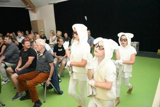 In der Mensa der Wiesengrundschule führte die Theater-AG das Stück „Füchse lügen nicht“ auf. Bei der Theater-AG handelt es sich um eine Arbeitsgemeinschaft des Betreuungsangebotes im Rahmen des "Pakts für den Nachmittag". 13 Schüler und Schülerinnen der dritten und vierten Klasse hatten unter der Leitung von Sabine Rühling und Thomas Jung das unterhaltsame Stück in Anlehnung an die Vorlage von Ulrich Hub einstudiert. Dabei wirkten die Schüler an der Umsetzung der Vorlage mit und entwickelten gemeinsam mit Rühling und Jung das Stück. In die vollbesetzte Mensa zogen nach der Begrüßung durch die beiden Polizisten (Lukas Breuer und Jakob Schmidt), zunächst drei Gänse (Mariam Edie, Jona Habicht, Klara Specht), drei Schafe (Marlena Dern, Mari Heller, Jenni Elsbach), zwei Pandas (Julia Wehr, Meline Weiß), Affe (Amelie Lesch) und Tiger (Karan Sahin) in die Halle eines Flughafens ein. Dazu gesellt sich noch ein Fuchs (Lia Lhotak), der sich vor allem für die Reisepässe der Wartenden interessiert. Alle eint, dass sie zunächst einmal auf dem Flughafen festsitzen. Daraus entwickelt sich ein tierisches Spektakel, welches durch die verschrobene Persönlichkeit der Tiere geprägt ist.