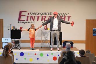 In der Reihe „Kultur im Sängerheim“ präsentierte am vergangenen Samstag der Gesangverein Eintracht Leihgestern die Zauberkünstler Carsten und Felix Skill aus Grünberg. Unter dem Motto „Zauberkunst erleben“ wurde im vereinseigenen Sängerheim gezaubert und Kinder wie Erwachsene in die Welt der Illusion und Magie entführt. Ein unterhaltsames und kurzweiliges Programm hatten der „große“ und der „kleine“ Zauberer zusammengestellt – und beide zogen die großen wie auch kleinen Besucher in ihren Bann. Mit Charme und Witz wurden die Zuschauer mit einbezogen, ob nun bei Seil-, Karten-, Würfel- oder aber Geldscheinzauberei. Auch wenn dann am Ende sich der Geldschein in einer Zitrone befand, so waren die Tricks sehr verblüffend und wurden mit viel Beifall bedacht. Carsten Skill lernte schon in der Schulzeit die Zauberei lieben und diese Begeisterung gab er auch an seinen Sohn Felix weiter. Der zehnjährige stand seinem Vater in nichts nach und suchte auch den Kontakt zum Publikum. „Ich bin ein kleiner und fange klein an“, lautete denn auch seien Devise. Beide zusammen lieferten eine gelungene Zaubershow ab, die mit viel Beifall und großem Erstaunen bedahct wurde, denn stets stellte sich die gleiche Frage: Wie machen die das bloß?“. Doch verraten wurden die Zaubertricks auch diesmal nicht.