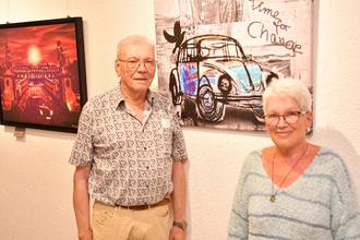Ausstellungsleiter Hans Ulrich Heymann und Ehrenstadträtingn Petra Braun begrüßten die Besucher zur Vernissage und eröffneten den 165. Zyklus
