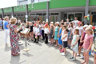 „Unsere Schule feiert heute“ stimmte der von Katrin Kirchhoff-Lösel und Susanne Saalbach geleitete Schulchor zur Eröffnung des Schulfestes an.