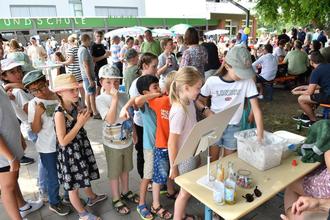 Sichtlich erfreut zeigte sich Schulleiterin Karin Schramm bei einem Blick auf die zahlreich gekommenen Eltern, Großeltern, Geschwister, Kollegen und Ehemaligen zum Schulfest der Wiesengrundschule Leihgestern. „Ich freue mich, dass wir nun nach fünf Jahren Zwangspause wieder gemeinsam feiern können und dass wie auch bei allen Schulfesten zuvor, das Wetter wieder mitspielt. Dieses Schulfest war nur möglich weil viele Helferinnen und Helfer im Vorfeld und auch heute bereit waren dieses Fest zu ermöglichen“, dankte sie ganz besonders dem Vorbereitung Ausschuss für Planung und Koordination dem Förderverein, Elternbeirat und den Lehrkräften.