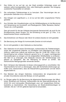 Für die Benutzung der Grillanlage, ihrer Einrichtungen und des Geländes gelten folgende Auflagen und Bedingungen: