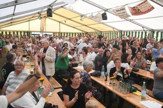 Tische und Bänke mußten noch angestellt werden, denn mit einem solch vollem Kirmeszelt hatte bei der Feier „70 Jahre KVH“ keiner gerechnet. 555 Besucher wollten sich nach 27monatiger Durststrecke das närrische Spektakel des Karnevalverein Harmonien Großen-Linden (KVH) nicht entgehen lassen.