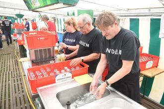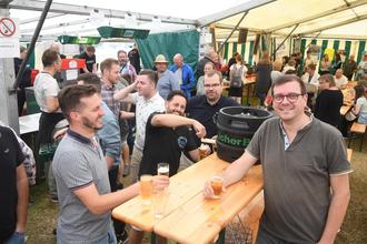 und selbst der Magistrat mit Bürgermeister Jörg König stellte eine Thekenmannschaft - allerdings mußte er sich dazu "Verstärkung" holen. ©Fotos: Thomas Wißner