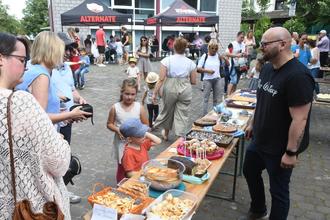 Am Freitagnachmittag fand das diesjährige Sommerfest der Kitas Stadtzentrum, Rappelkiste und Krabbelkäfer in Form eines „Tag der offenen Tür“ statt, die der Ende des vergangenen Jahres gegründete Förderverein StaRK dazu nutzte sich vorzustellen. Wenn auch Vorsitzender Stefan Lhotak verhindert war, so waren doch stellvertretender Vorsitzender Leo Freund und Rechner Dr. Aubin Tchaptchet am Stand im Einsatz, verkauften Kuchenspenden für einen guten Zweck. Der Name des Fördervereins "StaRK e.V." setze sich zusammen aus den Namen der drei Kitas, für die er tätig ist: STAdtzentraum, Rappelkiste und Krabbelkäfer. Gegründet wurde der Verein am 9. November 2021 und ist somit der erste Förderverein einer städtischen Kindertagesstätte in Linden. Kuchen, Kaffee, Waffeln und Kreppeln, Muffins und Fingerfood bot der Förderverein an seinem Stand an, wobei die Einnahmen in die Vereinskasse fließen um damit Ausflüge, Veranstaltungen und von den Kindern benötigtes Material zu finanzieren. Für die Kinder gab es zahlreiche Betätigungsmöglichkeiten, konnten sie Eltern und Großeltern Stationen wie Popcorn, Experimente, Seifenblasen, Gipsstecker, Bienchen und Schmetterlinge zeigen und sich betätigen. Bereits im Vorfeld hatten alle sieben Gruppen eine CD aufgenommen, die nicht nur anzuhören sondern auch zu kaufen war. ©Foto: Thomas Wißner