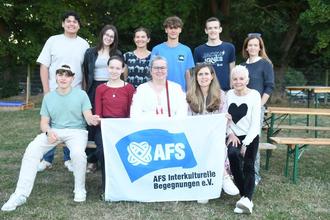 „Say good bye“ hieß es bei einem Treffen im Biergarten des Sportheims der TSG 1893 Leihgestern für acht Jugendliche aus dem AFS-Komitee Gießen. Die Schüler starten mit der Schüleraustauschorganisation AFS Interkulturelle Begegnungen im August für drei oder elf Monate zum Schulbesuch ins Ausland. Gastfamilien haben sich bereit erklärt diese jungen Menschen als neues Familienmitglieder in ihre Familie aufzunehmen. Für Jasper und Till aus Gießen geht es nach Kanada, für Jakob aus Grünberg und Luca aus Langgöns wie auch für Lena aus Wetzlar in die USA, für Luis aus Butzbach nach Thailand und für die beiden Butzbacher Seraphina und Jay nach Island. Für alle geht damit ein Traum in Erfüllung. Komitee Vorsitzende Uta Neumann (Linden) verabschiedet die Schüler im Beisein ihrer Eltern und nutzte die Gelegenheit um bei Schülern wie auch bei den Eltern dafür zu werben, zum einen Gastschüler aufzunehmen und auf der anderen Seite Schüler eine Teilnahme im Ausland zu empfehlen. Hierfür sind Bewerbungen über www.afs.de/schueleraustausch möglich. Aufgeschlossene Gastfamilien aus dem heimischen Raum die gerne einen jungen Menschen in ihrer Familie aufnehmen möchten können sich direkt an Uta Neumann unter der Rufnummer 06403776685 wenden. ©Foto: Thomas Wißner